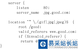 3、防止盜鏈接(拒絕用戶以鏈接的身份訪問jpg.good.com ;Referer:URL中Host內容不是www.good.com)