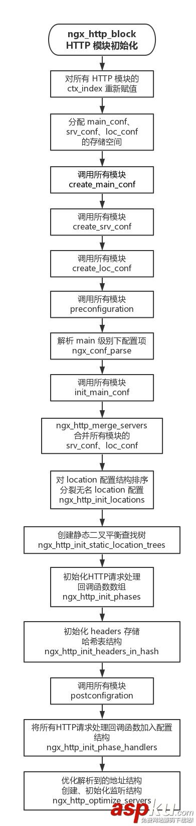 在 ngx_http_block 中,循環調用了所有 NGX_HTTP_MODULE 的這六個回調函數,創建相關的配置結構。
