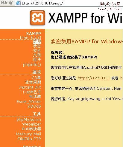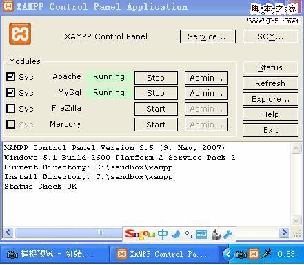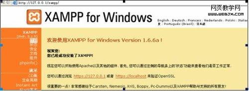 修改了這兩個地方之后,先雙擊c:/sandbox/xampp/ Apache_start.exe, 看是否成功。如果成功。然后雙擊桌面的xamp,打開IE瀏覽器進行查看,如下: