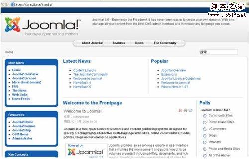 前臺界面:在IE中輸入http://localhost/joomla 即可進入。