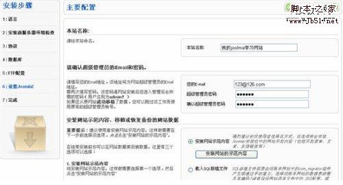 輸入本站名稱,郵箱,超級管理員密碼,點擊“安裝網站的示范內容”,(創建個有內容的網站,選擇下面的,可能要自己一步步創建,在此推薦“安裝網站的示范內容”,創建一個有內容的網站,以便學習),點擊下一步。