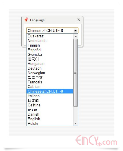 3.登陸后,點擊右上角“logged as admin”的下拉菜單中的Language更改語言,改為Chinese-zhCN.UTF-8這個就是簡體中文。