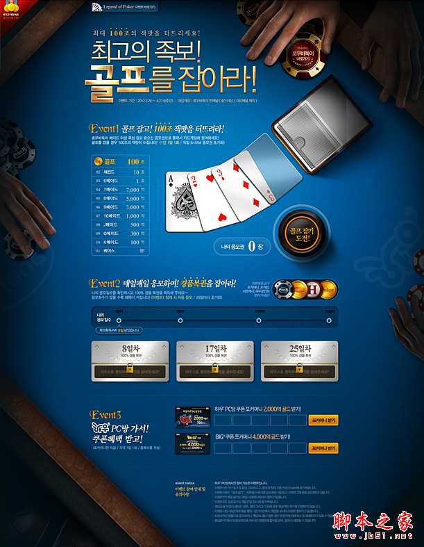 圖二:棋牌類頁面設計,在較少的內容信息情況下,通常將第一屏作為首要信息顯示區域。頁面設計除了營造強烈的氛圍以之外,設計師對頁面細節設計有很高的要求,桌面質感處理的比較細膩。在這樣的靜態頁面中,也可以體驗到較強的游戲感。