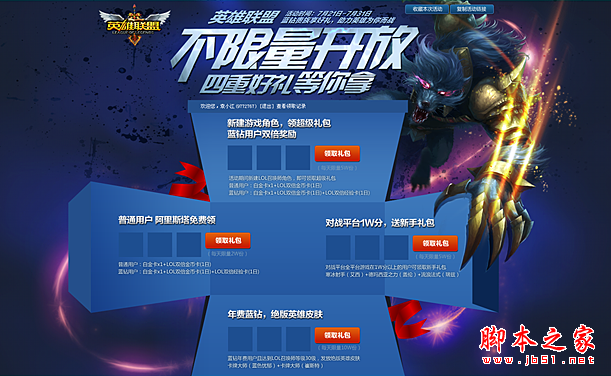 通常領取禮包的活動頁面,都會運用到游戲相關人物、標題、禮包、LOGO等素材,一般我們會簡單的將頁面的信息做好布局。在這個階段中,我們已經給頁面基本的方向做了定位,當然是需要和產品同事一起討論確認的。接著就是增加視覺細節和禮包內容,并完成最終的設計稿。但是,我們有沒有花一點時間去思考一下,活動頁面的關鍵詞“四重好禮”。是否有其他更為貼切的設計方式呢?經過一番思考,我們可以探索性的去嘗試,將禮包放在盒子里的設計思路。