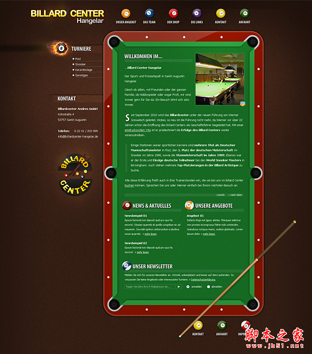 圖一:桌球類頁面設計,信息承載量相對比較大,頁面設計以內容為主,表現形式作為輔助。烘托頁面整體氛圍,同時也突出主題信息的內容。
