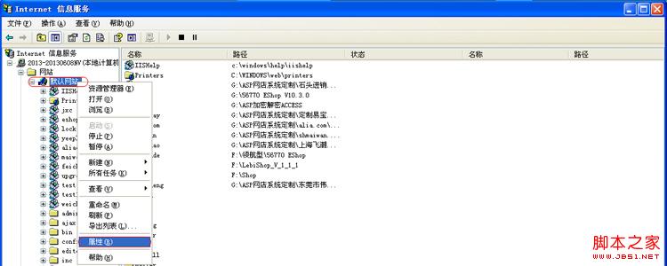 在網站上展開默認網站,點鼠標右鍵,選擇屬性如下圖