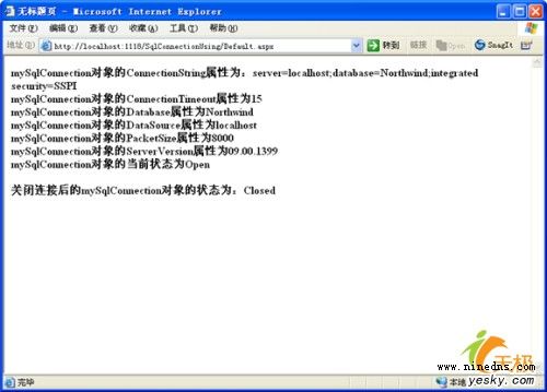 下面是一個顯示如何用SqlConnection對象連接Sql Server Northwind數(shù)據(jù)庫的實例程序,并且顯示該SqlConnection對象的一些屬性。