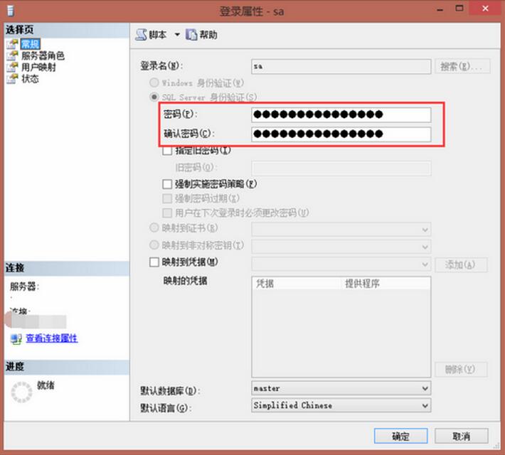 STEP 5. 在“常規”中,改好你自己的密碼,這是你sa登錄的密碼。