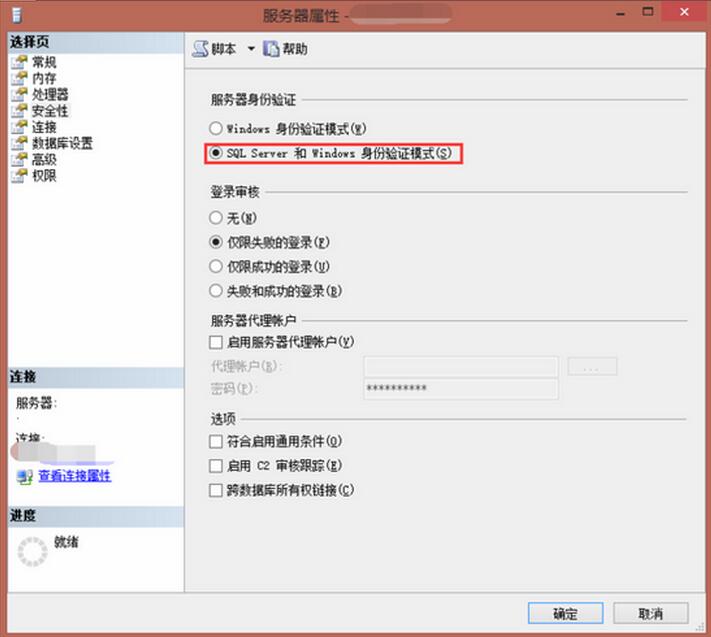 STEP 2. 選擇“安全性”,選中SQL SERVER和Windows身份驗證模式
