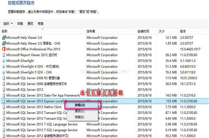 點擊卸載:Microsoft SQL Server 2012 Express LocalDB