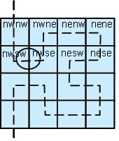 標準方法是,找到某一條空間填充曲線,并使鍵空間沿該曲線穿過。例如,使用標準墨卡托地圖,可以將西北中的每個人分配給西北鍵范圍,將東南中的每個人分配給東南鍵范圍。圖 2 顯示了第二種順序空間填充曲線,它橫穿所有這些象限,按順序分配鍵。西北-西南象限中的每個人都具有鍵前綴 nwsw。如果您的區域與圖 2 中所示的圓圈類似,就可以知道您的鍵范圍