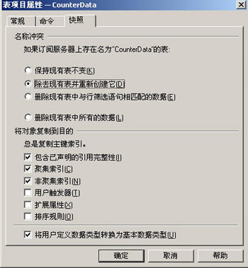 常規窗口可以指定發布目的表的名稱,可以跟原來的表名稱不一樣。