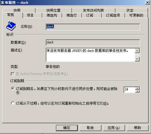 成功建立了發布以后,發布服務器上新增加了一個作業: [ 失效訂閱清除 ]