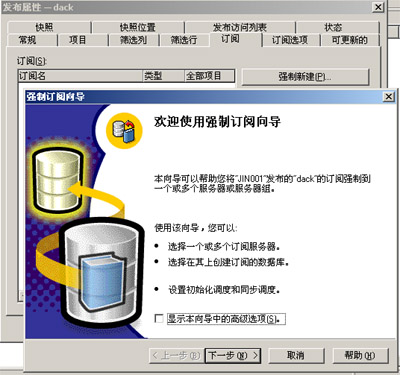 -> [下一步] -> [選擇發布] -> [選中已經建立發布服務器上的數據庫發布名]