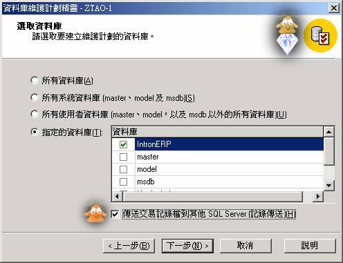 前兩個為選擇性(optional)步驟。如果您尚未同步化來源與目的數據庫,則步驟1會為您先備份來源數據庫,然后執行同步化動作。在步驟2時,精靈會將備份文件復制到次要服務器,并回存到目的地數據庫。