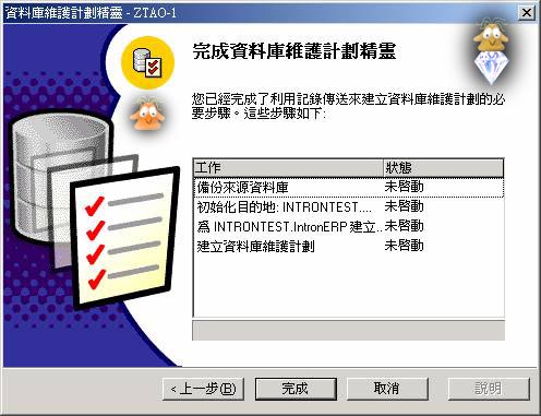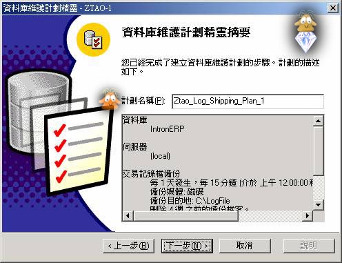 19、按下【完成】吧!此時精靈會自動從主要服務器與次要服務器之間設定日志傳送動作,并且在監控服務器上設定日志傳送監控程序。