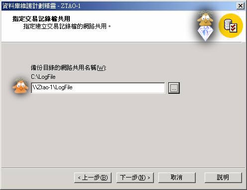 a. 建立c:/logfile,以存放primary server數據庫transaction log的備份