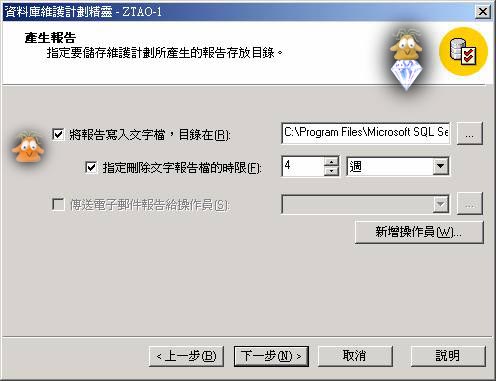 16、產生報告:建議將報告存到你log的目錄下,或者專門存放有關log shipping的log的目錄下,方便出錯時查找原因!