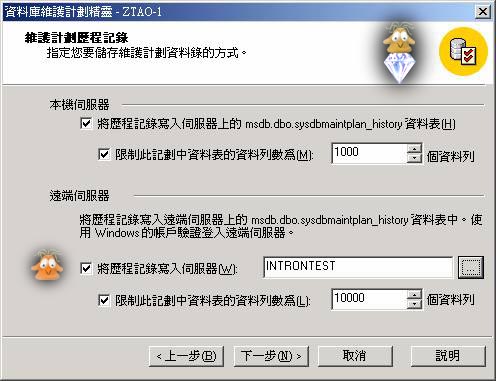 17、維護計劃歷程記錄:在secondary server上也保存一份記錄。