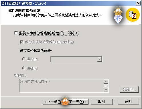 您可以使用數據庫維護計劃之【屬性】對話盒來更改日志傳送相關設定。在【交易記錄文件備份】設定頁提供的選項可更改日志傳送過程中交易日志文件備份的組態。