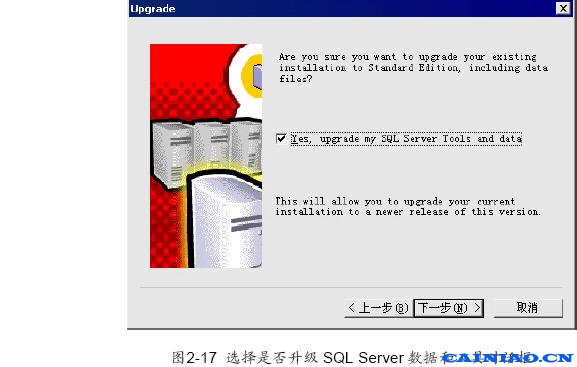 5、接下來(lái)出現(xiàn)如圖2-17 所示的選擇升級(jí)sql server 數(shù)據(jù)和工具對(duì)話框。如果數(shù)據(jù)庫(kù)不是很大,則可以選擇此選項(xiàng)。