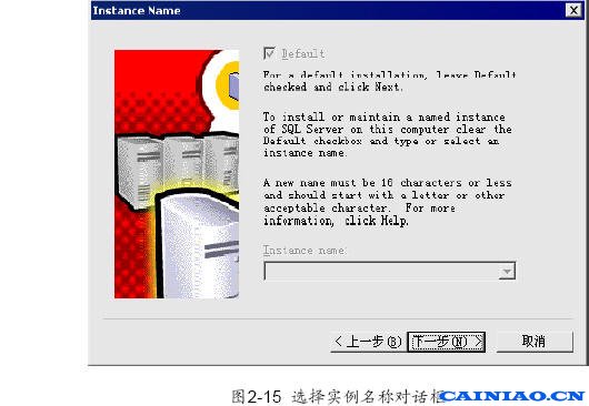 3、接下來(lái)出現(xiàn)如圖2-15 所示的選擇實(shí)例名稱(chēng)的對(duì)話框。如果以前安裝時(shí)使用的是缺省選項(xiàng)則不必另行設(shè)置。
