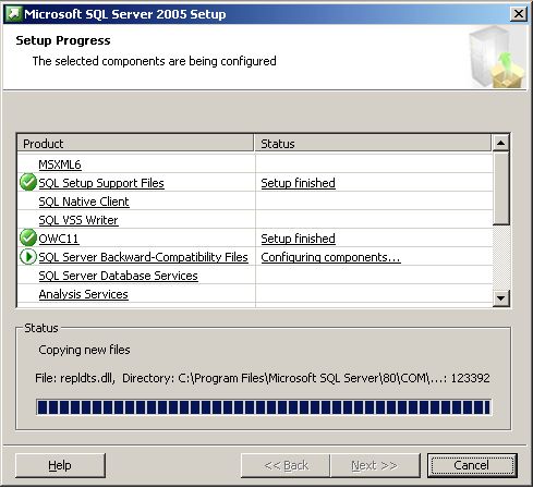“安裝進度(setup progress)”窗口讓你能夠了解安裝程序安裝各個組件到哪一步了。