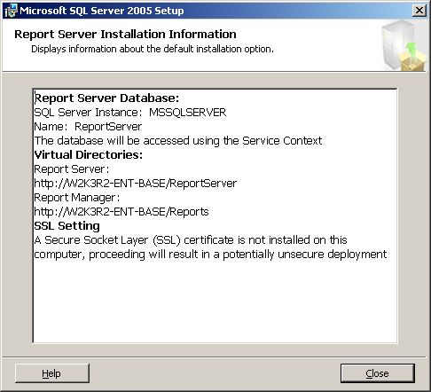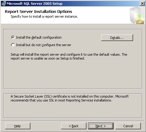 如果要選擇安裝“報告服務(reporting services)”,你就必須在下兩個畫面(圖k和圖l)里選中兩個安裝選項。首先,你可以用默認的選項來安裝“報告服務”,你也可以選擇不需要進行配置就安裝。我準備用默認的選項來安裝“報告服務”。