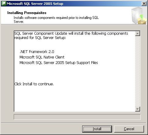 下一個畫面(圖b)顯示的是安裝程序要提前安裝的一些程序。.net框架2.0是這里的關鍵。如果你決定在同一臺server上安裝sqlserver2005以及其他應用程序,那就要確保它們都能夠使用這個框架。我碰到過2.0版的.net框架與應用程序發生沖突,從而要求使用低版本的框架的情況。點擊“安裝(install)”按鈕來安裝這些項目。當這些項目安裝完畢后,你可以點擊“下一步”按鈕。