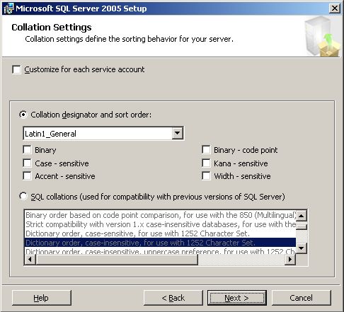 排序規則是不同的字符集和排序順序的組,sqlserver正是通過它們才能夠用于不同的區域和語言。sqlserver2005安裝程序讓你可以選擇“sql排序規則(sql collations)”,這樣你就可以向后兼容先前版本的sqlserver。但是,如果你要安裝“分析服務(analysis services)”,sql的排序規則就不能用于這項服務。