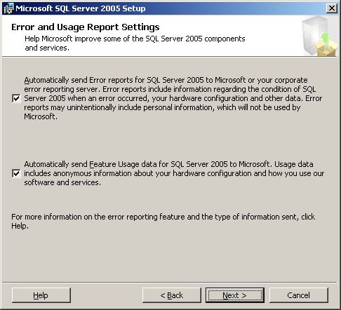 sqlserver2005的一個新選項讓你能夠把錯誤和使用信息提交給微軟。它的免責聲明(圖m)表示,個人信息可能會被意外發送給微軟,但是不會被微軟用于其他目的。你自己決定是不是要相信它。