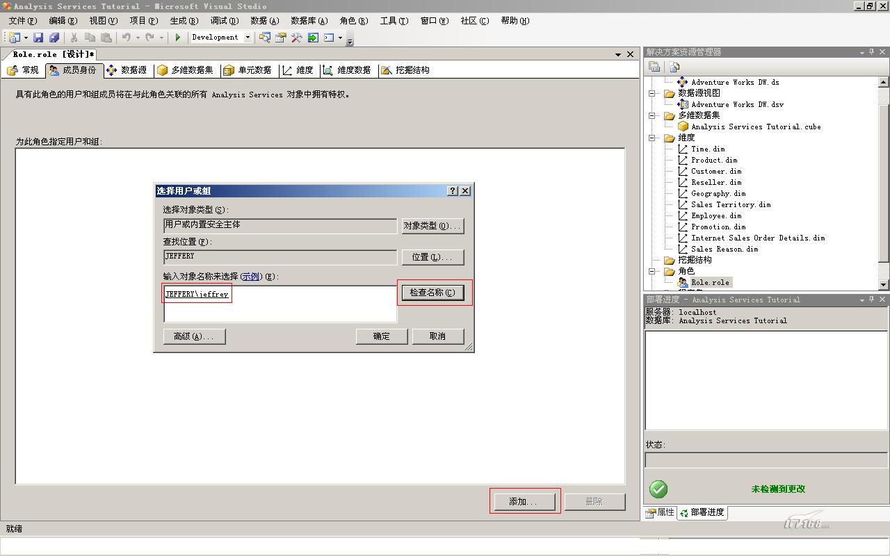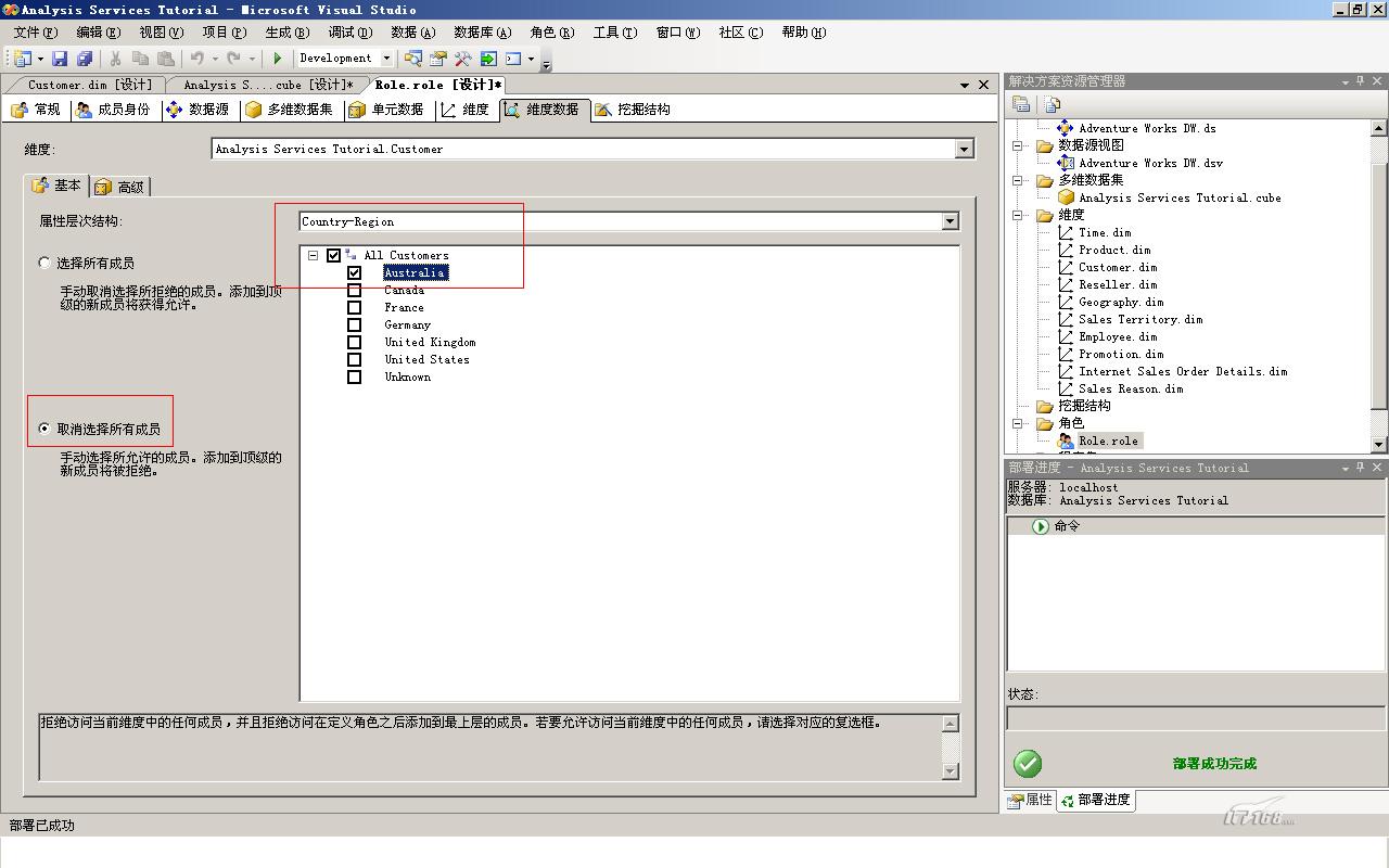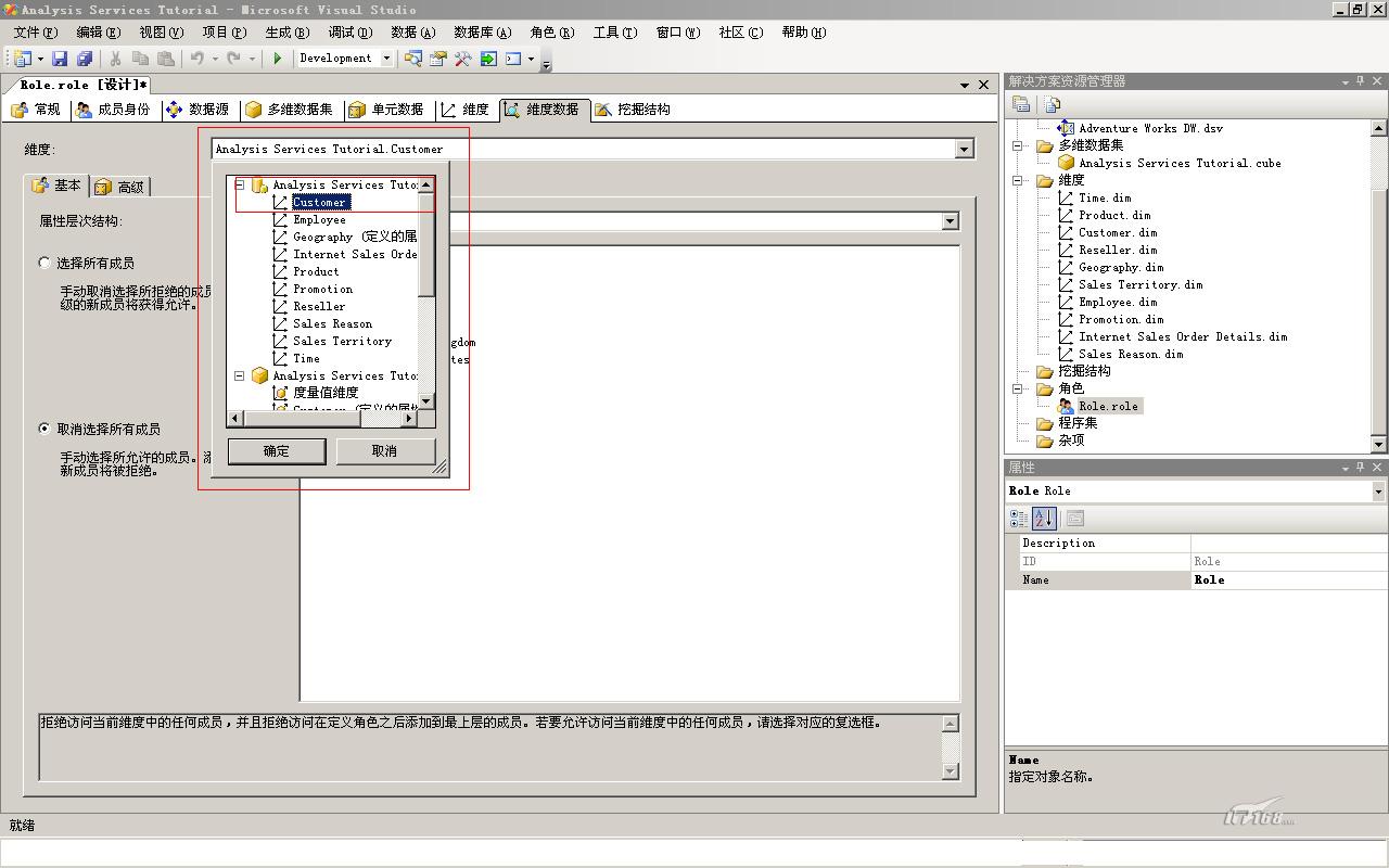 定義角色可以在多維數據集開發環境中定義,也可以完成多維數集部署之后在數據庫服務器端定義。