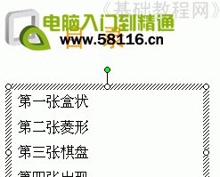 5)再插入一個文本框,輸入“第一張盒狀↙第二張菱形↙第三張棋盤↙第四張出現↙第五張打字機”(↙表示按一下回車鍵);