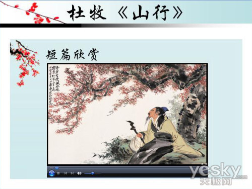 最后在PPT末尾插入一段與詩意非常融合的視頻即可。