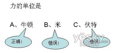 第二步:連續(xù)復(fù)制當(dāng)前頁(根據(jù)選項(xiàng)個(gè)數(shù),在這里復(fù)制三次),然后分別在每個(gè)復(fù)制頁的一個(gè)選項(xiàng)的旁邊加上評語,如“正確”或“錯(cuò)誤”。具體設(shè)置如圖1所示。