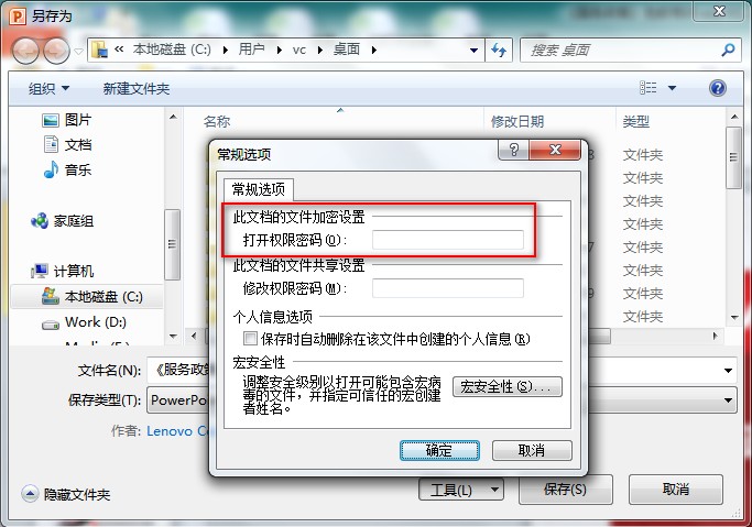 3、設(shè)置打開(kāi)密碼,即打開(kāi)PPT時(shí)需要輸入的密碼;