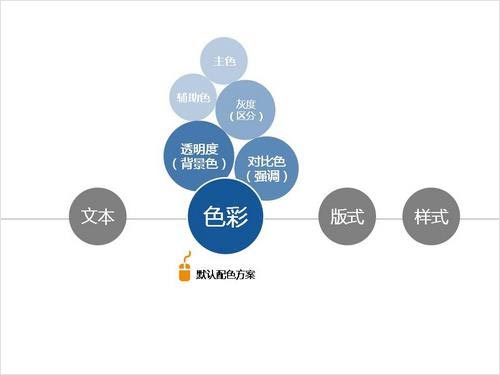 PPT中的標準設計包含文本,色彩,版式,和樣式四個方面的規范化執行。在這些規范的指導下對頁面內容中出現的模板,圖示,圖表,表格進行嚴格約定(打開一個PPT文檔放映,看看每頁標題位置是不是忽左忽右,大小各有不同?)
