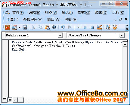 注意:“WebBrowser1.Navigate(TextBox1.Text)”中的兩個(描紅者)為數字“1”而不是字母。