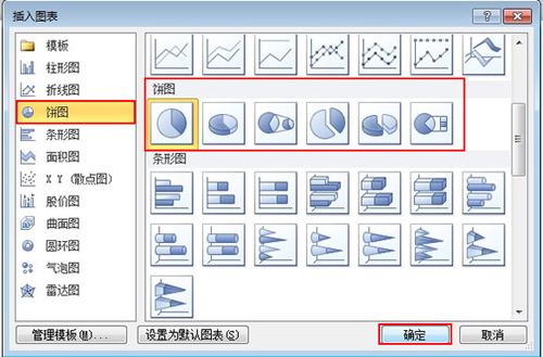 2、在彈出的“插入圖表”窗口左側的列表框中選擇圖表類型,然后在右側禮包中選擇子類型,點擊“確認”按鈕。