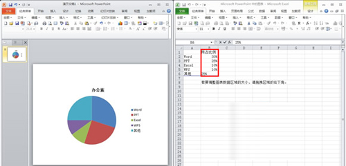 4、更改工作表中的數據,PowerPoint的圖表會自動更新。