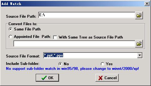 小提示:如果要自動監視子文件夾中的變化,請點擊“Include sub-folder”后的“Yes”,但這個功能要求你的操作系統為Win2000或Win XP,對Win98等不起作用。