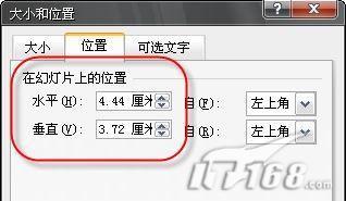 選中做好的扇形,在扇形上點擊右鍵,在彈出的快捷菜單中點擊“大小和位置”命令,打開“大小和位置”對話框。記住“位置”選項卡中“水平”和“垂直”輸入框中的數據備用,如圖3所示。