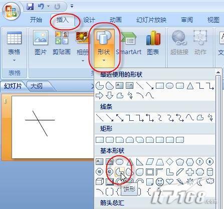 圖2 PowerPoint 2007插入基本形狀 電腦教程