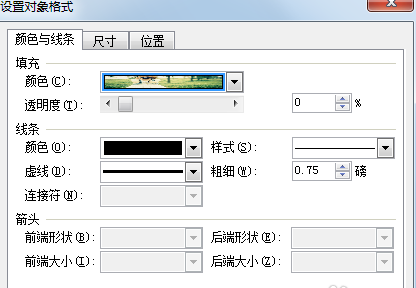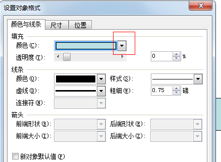 在彈出的對象格式框中選擇填充顏色這一項,點擊后面的小三角形。如下圖所示:。