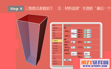 1、插入矩形,通過(guò)設(shè)置其三維旋轉(zhuǎn)的坐標(biāo),以及三維格式的深度和輪廓線(xiàn)來(lái)實(shí)現(xiàn)3D效果