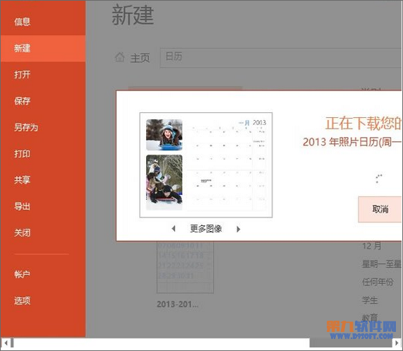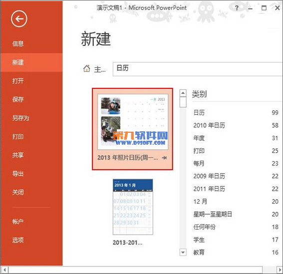 ①PowerPoint2013新增了不少模版,我們為了方便,完全可以通過這個功能來創建,單擊文件--新建,選擇日歷模板。