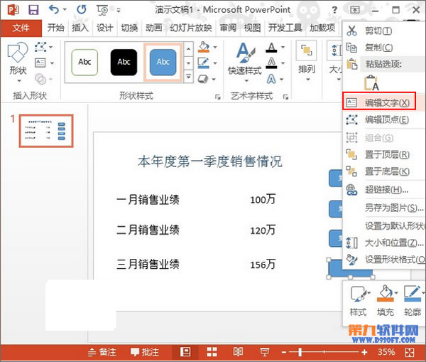 2、插入文本框和圖形,輸入文字,擺放到合適的位置,鼠標右鍵單擊圖形,從彈出的右鍵菜單中選擇編輯文字。