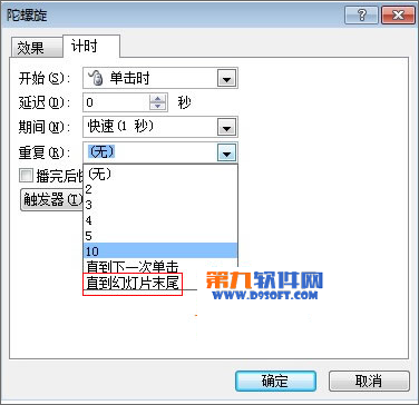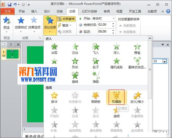 7、添加動畫效果--陀螺旋,為什么要畫大圓呢?陀螺旋只是物體360度旋轉,雖然可以改變度數,但并不是像時鐘那樣搖擺,而是繞自己中心旋轉,不知道大家明白沒有。