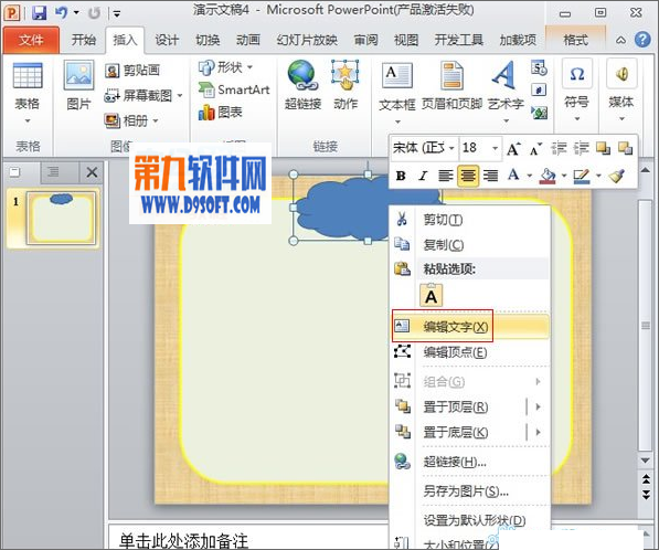 3、然后在插入一個(gè)形狀,做為標(biāo)題,右擊,編輯文字。