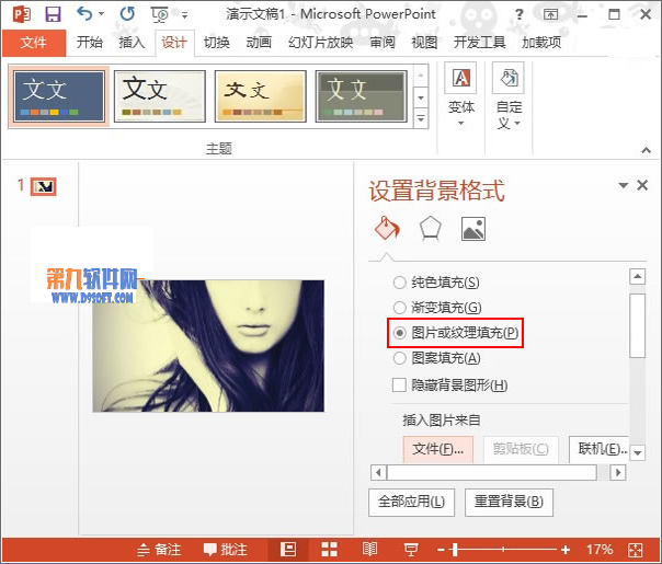 4、然后勾選圖片或者紋理填充,點擊文件按鈕選取本機上的圖片插入進去。